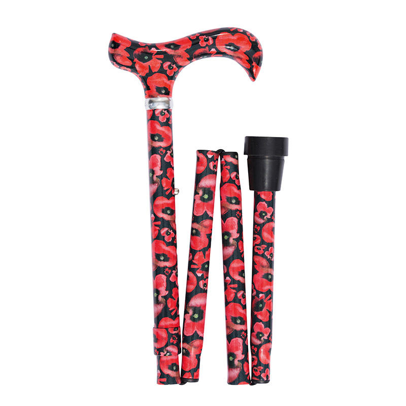 Hopfällbar promenadkäpp med vallmotryck