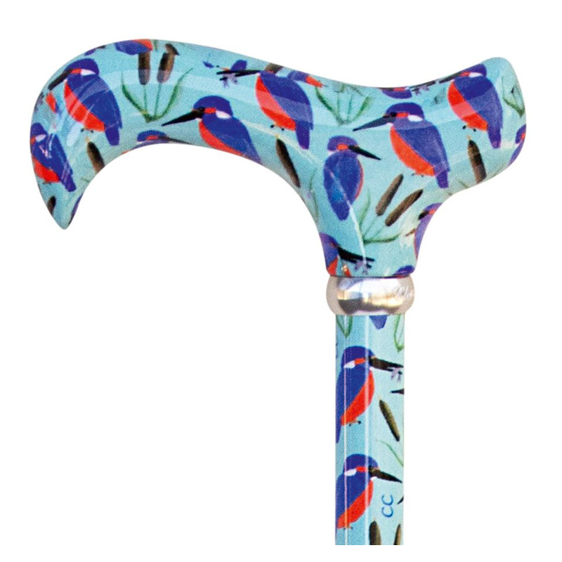 - Justerbar käpp med fågelmotiv i två varianter – kungsfiskare eller lunnefågel
