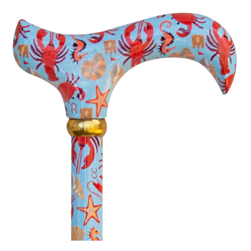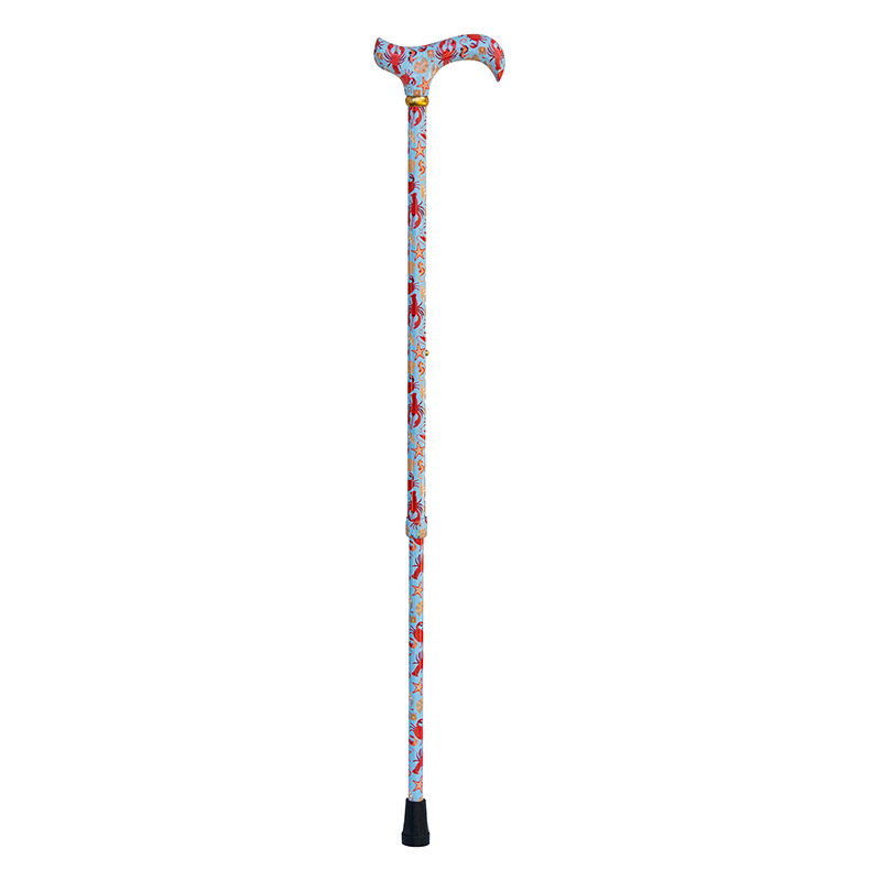 - Sandstrand – ljusblå käpp med krabbor, hummer, sjöhästar, sjöstjärnor, snäckor och sandslott