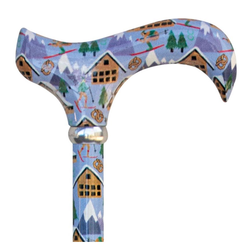 - Skidåkning – vinterinspirerad käpp med alplandskap, stugor, granar, kringlor och skidåkare