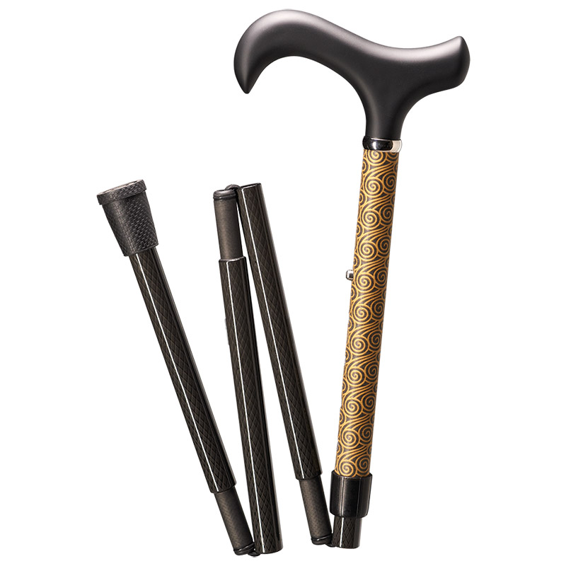 - Gastrock hopfällbar käpp kolfiber guld med reflekterande gyllene vågdekor