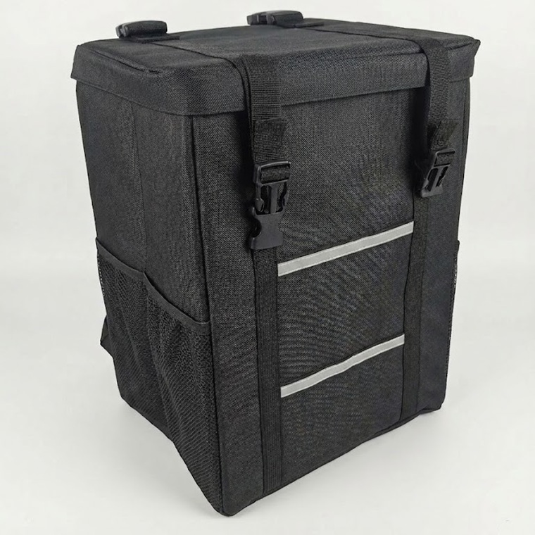 Du fäster väskan bakom sits och ryggstöd med de medföljande justerbara banden – ungefär som en ryggsäck. Banden är justerbara i längd för att passa olika storlekar på ryggstöd och du behöver inga verktyg eller specialfästen. Med 45 liter ryms matvaror, kläder och personliga tillhörigheter utan problem. Väskan är invändigt klädd med en silverfärgad isolering som håller temperaturen stabil – perfekt för att hålla maten varm eller kalla varor svala under dagen.