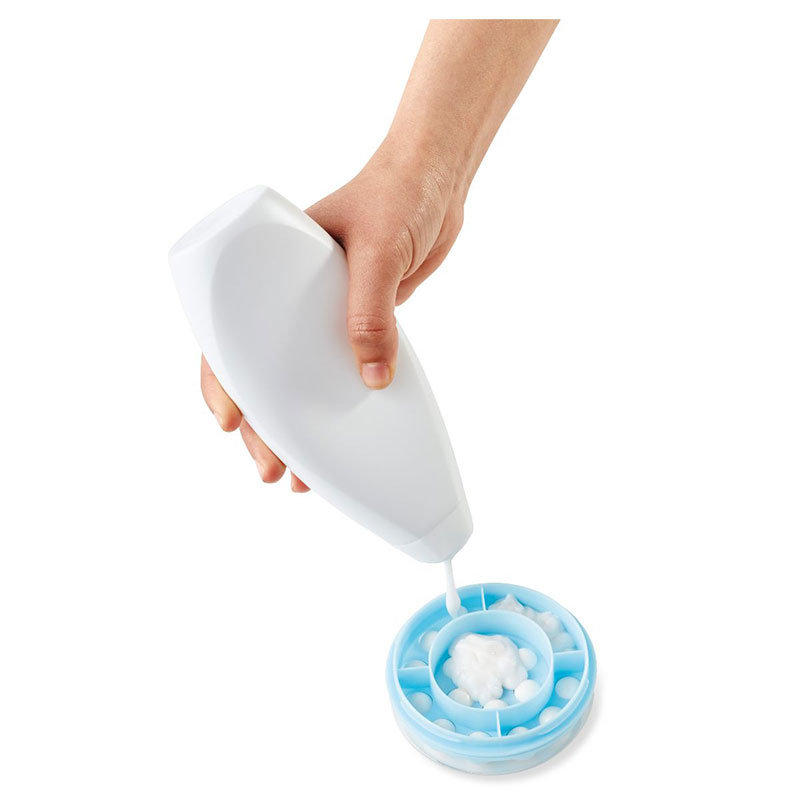 Du kan använda ryggsmörjaren med alla typer av kräm, lotion och tvål. De roterande kulorna fördelar produkten jämnt utan att du behöver gnugga. Handtaget är tillverkat i plast som tål vatten och du kan använda det i duschen.