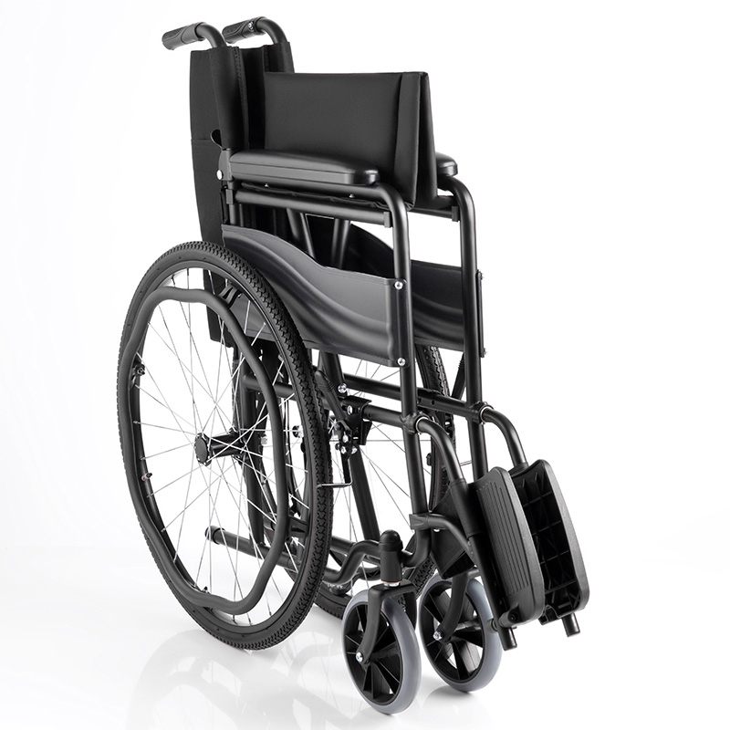 - Hopfällbar rullstol i stål med fällbart ryggstöd för maximal kompakthet